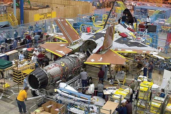 이 같이 고성능을 갖춘 F35 전투기 제작 현장은 어떨까. 길이 1.8㎞(1.1마일), 너비 30m로 기다란 형상의 F35 조립 공장은 카트를 타고 둘러보는 데만 40분이 걸릴 정도였다. 작업 중인 생산 인력은 1500여명. 공장에서는 F35를 세 기종으로 세분화해 공군용 F35A, 해병대용 F35B, 해군용 F35C를 동시에 제작한다.